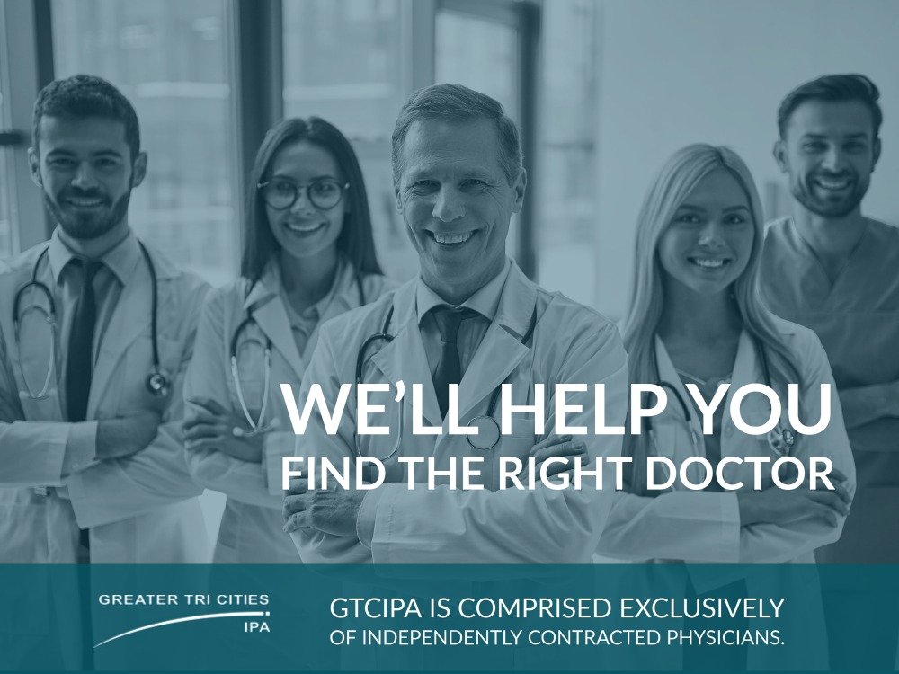 At Greater Tri Cities IPA (GTCIPA) we understand how important it is to choose the right doctor to meet your health care needs. With our Provider Search, you can quickly find a doctor in your area, by preferred specialty, language and gender. GTCIPA strives to help you to protect your overall health.