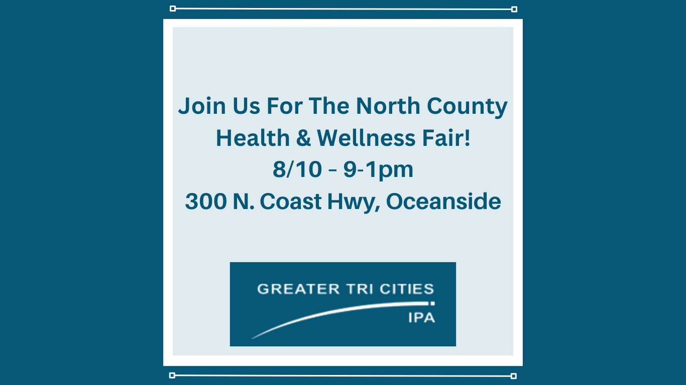 Join Greater Tri Cities IPA, tomorrow August 10, 2023, from 9:00 a.m. to 1:00 p.m., at the Oceanside Chamber Annual North County Health & Wellness Fair.